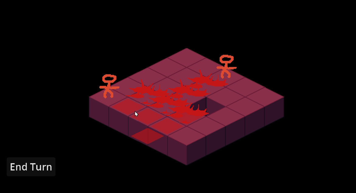 Here's the first prototype I made. You can select between two units, move them around and attack. I puit it in front of players and quickly realized that i'm not giving the player enough information about what's going on under the hood. Players were confused as to why they suddenly couldn't move their units anymore, which was because they were simply running out of allowed movement in a turn. Of course they had no way of knowing movement was a resource.